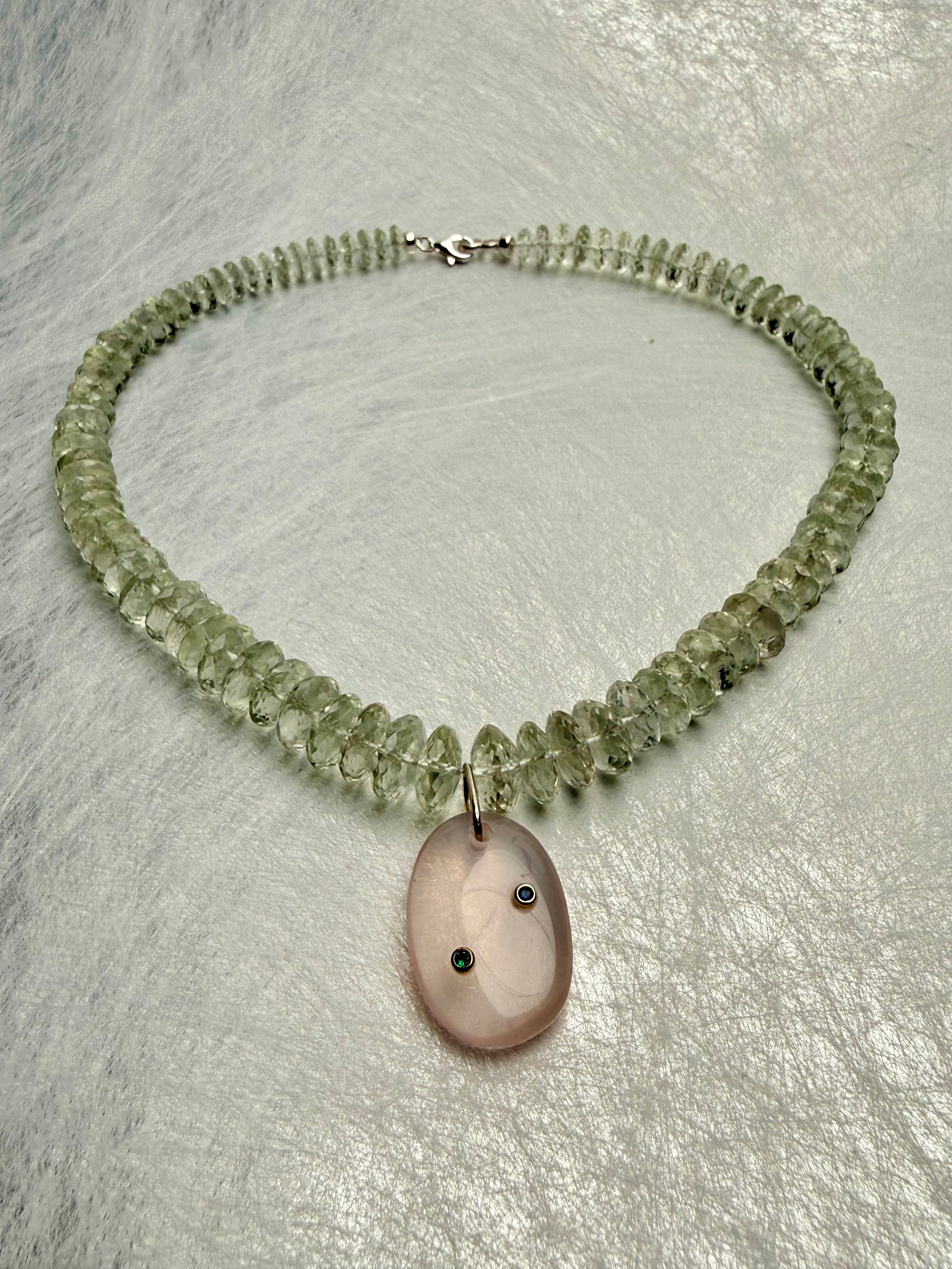 Material: Green Amethyst and Rosequartz with Zirconia